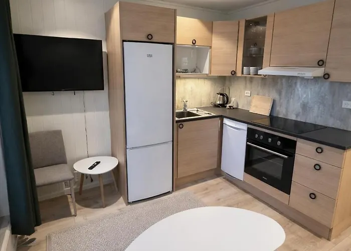 Det er også et komplett kjøkken utstyrt med et kjøleskap og en ovn i hvert rom. Den nærmeste flyplassen er Hammerfest, ca 5 km fra denne leiligheten i Hammerfest.